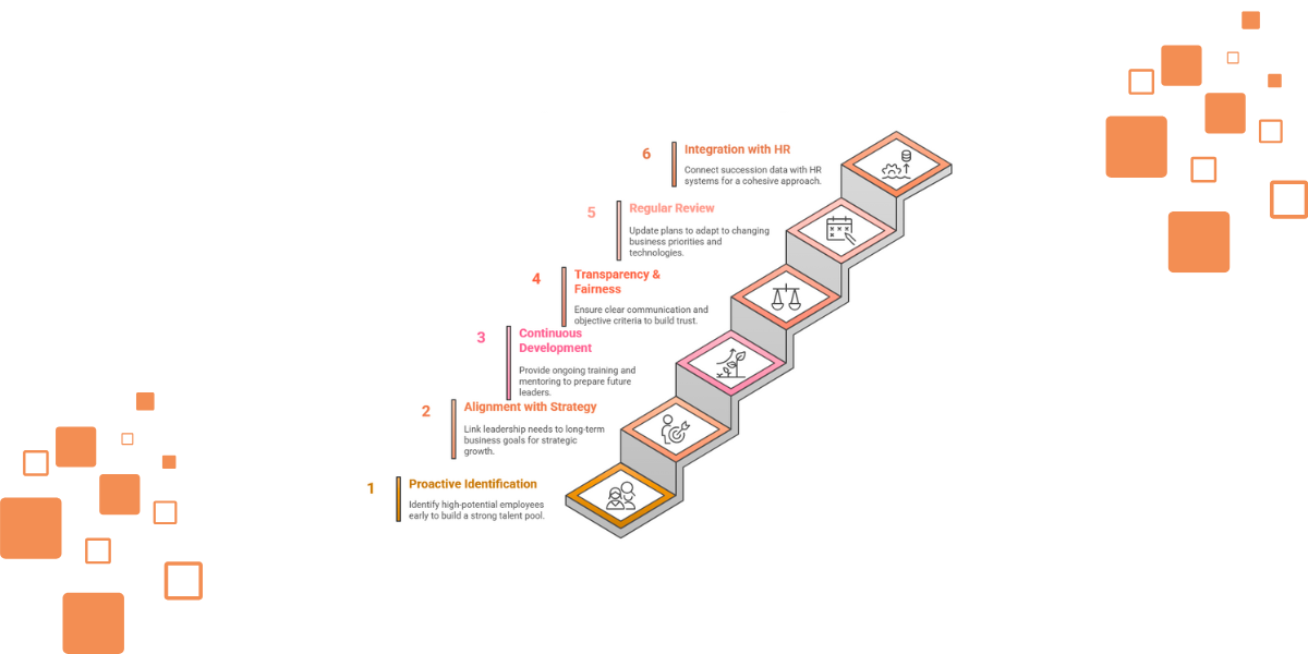 Succession planning makes your business ready for change. It protects you against sudden leadership gaps. Begin finding the high-potential employees early. Next, connect their growth with your long-term goals. Mentor, train, and job rotate to build their skills. Re-check your plan and adapt to changes in needs.