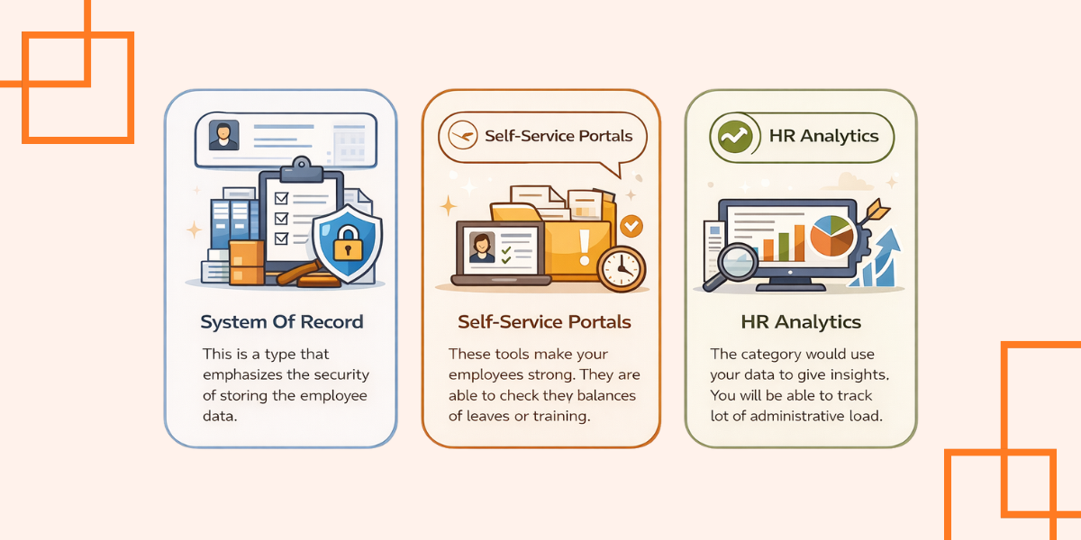 This type emphasizes the security of storing employee data. It contains document administration and electronic employee databases. It is the centre of your HR data strategy.
