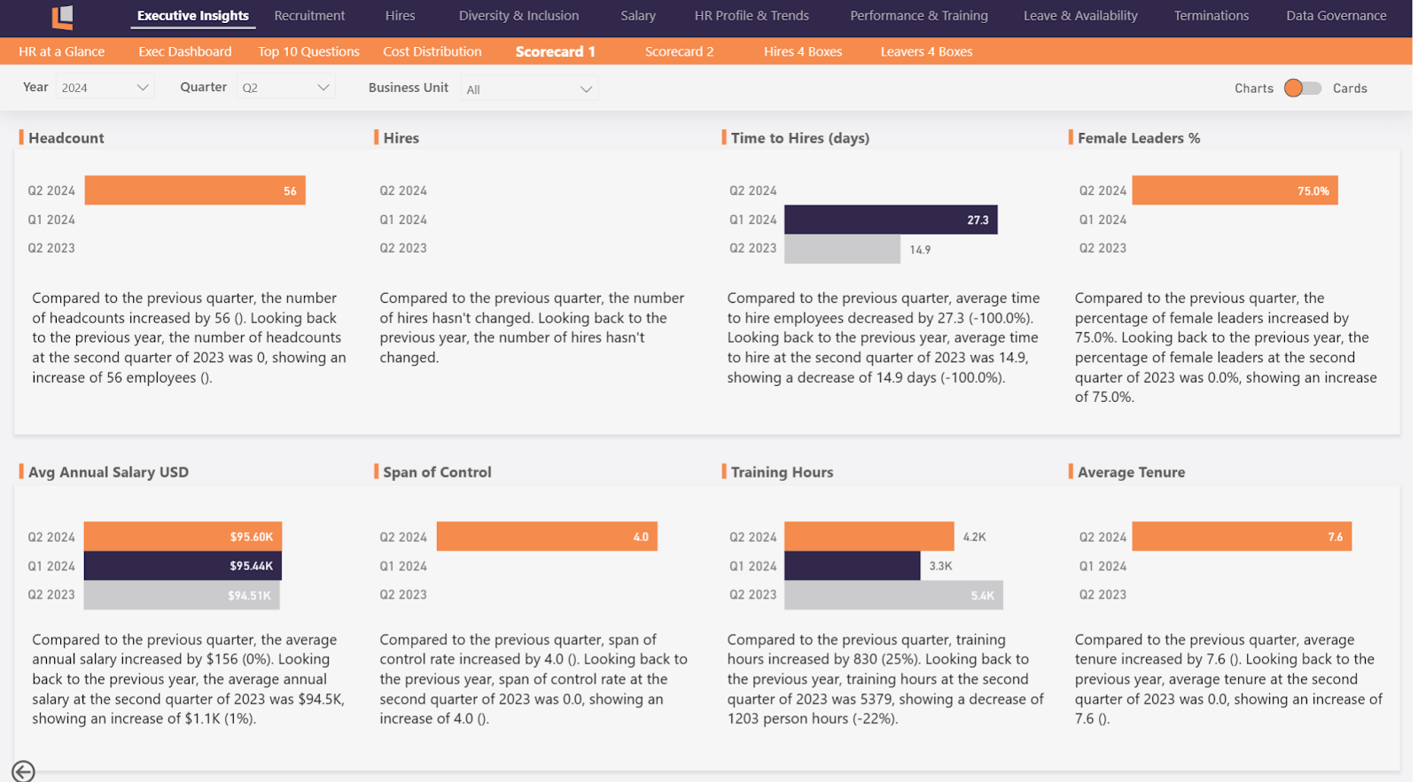 There is no one-size-fits-all. The dashboards we created can be modified. You will be able to customize the views to suit leaders, HR managers, or individual department heads. Each of us sees the data that is most needed for their work.